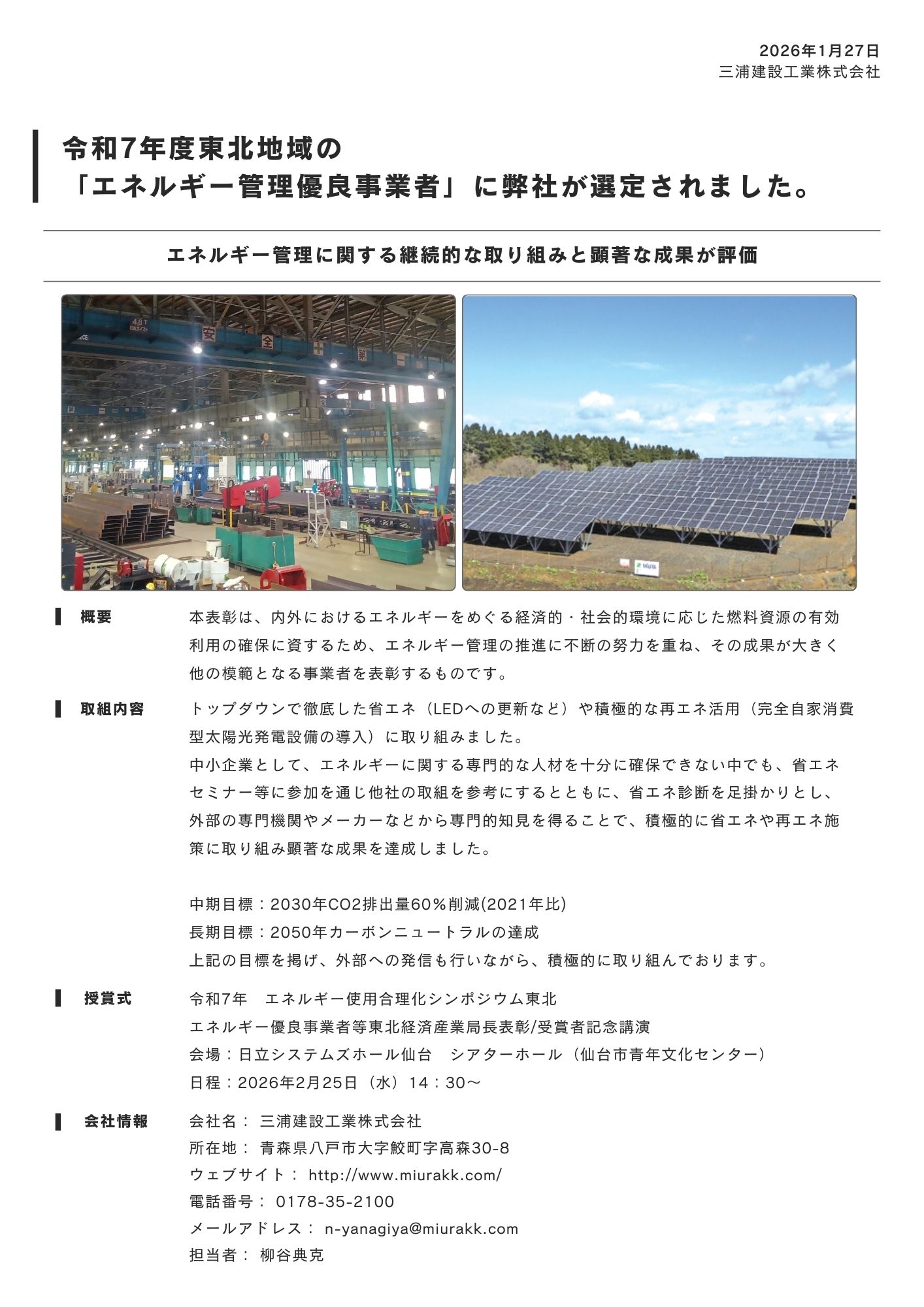 令和7年度東北地域の「エネルギー管理優良事業者」に弊社が選定されました。
